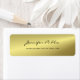 Modernes Gold Elegant handgeschriebene Skriptvorlage Rückgabeadresse Label. Ideal für echte Anwesen-Agent, Wirtschaftsprüfer, Makler, Broker, Anwälte, Anwälte, Ärzte, Corporate Professionals, Stylist, Architekten, Ingenieure, Regisseure, Manager, Berater, Designer, Lehrer, Musiker, Schönheitssalons, alle Berufe.