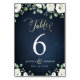 Moderne goldene Hochzeit mit blauen Blumen Tischnummer