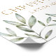Moderne und elegante Hochzeitssignatur mit einfacher und stilvoller goldener Handschrift auf weißem Hintergrund, ergänzt durch einfaches und elegantes schlanke grünes Blattwerk. Passen Sie Ihre individuellen Daten an.