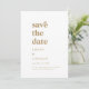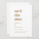 Diese moderne Goldtypografie ist Save the Date perfekt für eine einfache Hochzeit. Das minimalistische Design in Gold und Weiß besticht durch einen Retro-zeitgenössischen Schriftart mit einem einzigartigen rustikalen böhmischen Ambiente. Ideal für jede Jahreszeit. Behalt es minimal, wie es ist, oder fügen Sie Ihre eigenen Grafiken und Kunstwerke.