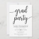 Moderne Graduierungsparty Einladung mit Skripttypografie. Eine minimale "Grad Party" Abschluss Einladung. Option zum Hinzufügen eines Abschluss-Fotos auf der Rückseite der Abschluss-Karte.