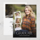 Die Einladungen der Graduierungsparty bieten Platz für 5 Fotos: eines, das die gesamte Kartenvorderseite ausfüllt, 3 kleine Bilder, die das vordere Foto überlagern, und ein 5. Foto auf der Rückseite. Das Design ist mit klassischem Text versehen, der das Foto überlagert. Personalisieren Sie die Rückseite mit dem Text Ihrer Party Einladung.