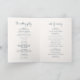 Elegantes Hochzeitsprogramm mit einem einfachen und klassischen Design mit Ihren Namen in einem modernen Drehbuch und Ihre Details in einer Kombination von klassischen Serifen und kursiven Schriftart.