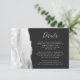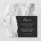Der links Rand dieser eleganten, modernen Hochzeitsdetails Gehäuse-Karte verfügt über eine grau-weiße Aquarellgrenze mit Imitaten silbernen Glitzer bestickt. Der Titel erscheint in einem handgeschriebenen Skript, mit dem unten in einem hellgrauen Copperplate-Schriftart auf schwarzem Schiefer-Hintergrund anpassbarer Text angezeigt wird. Die Rückseite weist ein passendes Drehdesign auf.