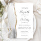 Die links Seite dieses eleganten, modernen Hochzeitseinladens besticht durch eine grau-weiße Aquarellgrenze, die mit dem vergoldeten Glitzer der Imitate bestickt wurde. Der anpassbare Text kombiniert Handschrift, Copperplate und kursiv Schriftart in Holzkohlegrau auf weißem Hintergrund. Die Rückseite weist ein passendes Drehdesign auf.