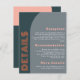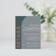 Eine moderne Hochzeitsausstattungskarte, die mit einem farbenfrohen, aquamarin-blauen, orangefarbenen und pfirsichfarbenen Pop aus Bogenformen bestückt ist. Entworfen mit farbenfrohen abstrakten Bogen-Elementen und kühnen Schriftart, die ein trendiges boho Retro-Ambiente geben, perfekt für Frühling, Sommer oder Hochzeit im Herbst. Die Farbe der Bogenformen kann ebenfalls angepasst werden.