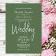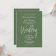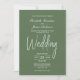 Eine elegante, minimalistisch grüne Hochzeitseinladung mit weißem Text.