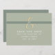 Einfache, elegante, minimale, moderne, nicht-Foto Salbei grüne Hochzeit speichern das Datum Einladung mit goldenem Ampersand - Monogramm mit Initialen.