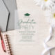Feiern Sie Ihren Abschluss mit unseren Einladungen zur Modernen Grünen Skripte-Abschlussfeier. Dieses Design mit einer stilistischen grünen Graduationskappe oben und "Graduation Party" in eleganter grüner Schriftzypografie ist ein Set vor einem schlichten Vellum-Hintergrund für einen eleganten und zeitgenössischen Look. Einfach mit dem Namen und den Party des Absolventen personalisieren, um eine einzigartige und unvergessliche Ankündigung zu schaffen. Diese minimalistischen Vellum-Einladungen sind perfekt für Absolventen der Gymnasialschule und Uni und bieten eine raffinierte Art, diesen besonderen Meilenstein zu würdigen.
