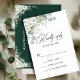 Vervollständigen Sie Ihre Hochzeitssuite mit unserer modernen Emerald Greenery Wedding RSVP Card. Mit einem ausgeklügelten Aquarelldesign aus Eukalyptus-Blätter und zarten Jasminfarben-Blume passt diese Karte nahtlos zu Ihrem Grün- oder Aquarellthema. Seine natürliche Eleganz sorgt dafür, dass die Reaktionen Ihrer Gäste mit Stil und Anmut ankommen und den perfekten Ton für Ihre Feier setzen.