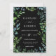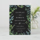 Moderner und eleganter botanischer Garten-Rahmen, Hochzeitseinladung. Hübsches blaues und grünes Blattwerk. Schwarzer Hintergrund. Die Einladung bietet schicke Typografie Design Stil Mix aus Kalligraphie und fett-Typ.