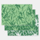 Hübsches und modernes Verpackungspapier-Set mit grünen Zweigen auf grünem Hintergrund.