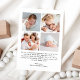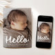 Herzlich willkommen in dieser modernen und herzlichen Geburtsankündigung, die das vertikale Foto Ihres Babys und das Wort "Hallo" in einem handgeschriebenen weißen Schriftsatz enthält. Name und Geburtsdaten Ihres Babys werden unten in einem sauberen, zeitgenössischen Schriftart angezeigt. Auf der Kartenrückseite befindet sich oben eine viereckige Collage mit einem Quadrat von 4 Foto, auf weißem Hintergrund ein Set mit unten stehender Leerstelle für eine personalisierte Nachricht. Ein stilvolles und Foto-Forward-Design, das sich perfekt eignet, um Freunden und Familie die Neuankömmlinge vorzustellen.