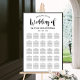 Moderne Hochzeitssitzkarten Begrüßungspakete / -zeichen zeichnen sich durch ein modernes Schwarz-Weiß-Farbschema mit fett und spielerisch handgeschriebener Kalligraphie-Schrift-Typografie mit stilvollen Schriftzügen aus. Personalisieren Sie den lässigen und dennoch eleganten Text für Ihre Hochzeitsfeier.