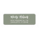 Einfache Rücksendebeklemmenvorlage für ihn mit moderner handgezeichneter Schrift in Weiß auf matt grünem Hintergrund. Dieses einfache Adressetikett zeichnet sich durch eine zeitgenössische Schriftart-Verbindung mit der abgerundeten Serifenschrift Rubik aus, die nach dem legendären "Rubikwürfel" benannt ist. Hintergrundfarbe und Schriftart des Etiketts können auf der Designebene geändert werden. Viel Freude daran und mit den Worten von Prof. Ernő Rubik "Cube on!" © y.BEE PAPERIE