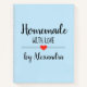 Modernes, hellblaues Rezept mit niedlichem rotem Herzen mit dem Zitat "hausgemacht mit Liebe". Personalisieren Sie mit Ihrem Namen. Das ist ein tolles Geschenk für jeden Anlaß.