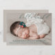 Script Baby Faire-part de naissance Carte photo. Script superposé avec les mots "bonjour monde". Design polyvalent vous pouvez customiser pour annoncer votre nouvelle petite fille. Sélectionnez votre propre arrière - plan de couleur solide pour le dos de la carte pour correspondre à votre photo bébé.