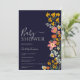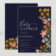 Elegante moderne Herbst Winter Blume Illustration in rot, grün, orange und aquamarin Script Babydusche mit einer modernen Kalligraphie Typografie auf bearbeitbaren dunkelmarineblau.