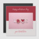 Moderne Kunstgegenstände mit rot/rosa Farbblockhintergrund mit Mitte-Bild von "Liebe" in weißen Buchstaben und Blume, Happy valentine's day in White moderne Drehbuch mit anpassbaren roten Schrift am Ende, um Ihre eigene persönliche Touch hinzuzufügen.