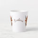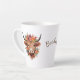 Personalisierter Vorname moderne Hochland Kuh boho floral auf weißem Hintergrund Latte Tasse. Ideal für Weihnachts- oder Geburtstagsgeschenke. Diese stilvolle Tasse besticht durch ein trendiges boho-blumengeschmücktes Kuh-Design, das sich ideal eignet, um Kaffee oder Tee zu genießen.