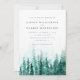 Wenn Sie Ihre Hochzeit mit einem modernen Freiburger Festen gewollt haben, ist diese Hochzeitseinladung für Sie ideal. Mit einem Aquarellwald mit Kiefernbäumen ganz unten. Ihre Daten werden in einer klassischen Serifentypografie dargestellt. Umkehrend zu einer tiefen grünen Hintergrundfarbe.