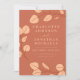 Schöne, elegante Eukalyptus-Blätter mit Terrakotta, Pfirsich und gebrannter orangefarbener Hochzeit im Herbst mit schlichten, orangefarbenen Linien-Kunstdetails auf pfirsichfarbenem Hintergrund. Ein modernes, einfaches Blatt Hochzeitsszenario mit schick minimalistischem Herbstdesign, das perfekt für einen botanischen diy bedruckbaren Download oder moderne gedruckte Hochzeitseinladung geeignet ist. Einfach zu bedienende Vorlagen mit einem feinen, weißen, eleganten Typografieschreiben auf dunklem Orange Terrakotta Hintergrund. Einzigartig Minimalistisches herbstliches Grün zeichnend, vereinfachend und stilvoll und Künstler kreiert individuelle Hochzeitseinladung. Original-Kunstwerk von Catherine Sweetman