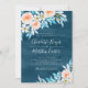Elegantes und modernes Hochzeitsdesign mit wunderschönen Aquarellfarben-Rose, Blume und anderem Laub auf marineblau blauem Aquarell. Ideal für anspruchsvolle Hochzeiten mit einer Touch von Romantik und zeitgenössischem Stil.
