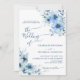 Diese moderne Einladung besticht durch anmutige Aquarellblumen in sanften, staubigen Blautönen, die durch eine saubere, zeitgenössische Typografie ausgeglichen werden. Ideal für Paare, die eine raffinierte und romantische Ästhetik mit frischen Farben suchen.