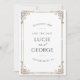 Modernes Design im klassischen Stil. Senden Sie diese zeitlos speichern Sie die Datumskarten an Freunde und Familie, um Ihre Hochzeit anzukündigen. Mit einem goldenen Zierrahmen. Stellen Sie sich Ihre Wünsche mit Ihren Formulierungen und Ihrem Foto ein.