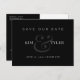 Klassische minimalistische Ampere und schwarz-weiß Typografie Hochzeit speichern das Datum dunkle bicolor Ankündigung Postcard Vorlage. ++++++++++++ Geeignet für jede Hochzeitssaison. +++++++++ Einfach mit Foto und Text auf beiden Seiten personalisieren!