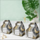 Eine personalisierte Gastgeschenk Hochzeit mit abstraktem Design mit einem agaten Geodenmineralmuster. Gold, Grau, Weiß und Schwarz setzen sich zusammen und bilden elegante Farbwellen. Ein hellgraues Quadrat mit einem dünnen schwarzen Rand, der oben mit dem Text im Inneren platziert ist. Ideal, um einen Hauch von Klasse und Eleganz zu vermitteln.