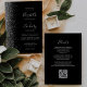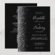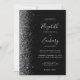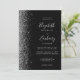 Die links Kulisse dieser modernen Hochzeitseinladung besticht durch ein silbernes Imitat-Glitzer-Design. Der anpassbare Text kombiniert silbergraue Handschrift, Kupferplatte und kursiv Schriftart auf schwarzem Hintergrund. Die Rückseite bietet Platz für Hochzeitsdetails auf einem soliden schwarzen Hintergrund, zusammen mit einem QR-Code können Gäste scannen, um Ihre Website und UAWG zu besuchen, was die Kosten für den Druck und Versand separater RSVP-Karten rette.