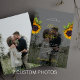 Trendy Foto Overlay Hochzeitseinladung mit wunderschönen Sonnenblumenbouquets auf dunklem, durchsichtigem Hintergrund. ++++++++ Ideal für Ihren Sommer oder Herbst im eleganten Garten im Freien, im Bauernhaus oder im Hinterhof. +++++++++++++++++ Persönlich gestalten mit den 2 Verlobungen Fotos der Braut und des Bräutigams, den Namen in den Imitaten, dem Goldskript und den Einzelheiten der Hochzeit!