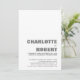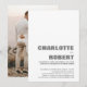 Mit diesem minimalistisch-puristischen Weiß laden Sie Ihre Freunde und Liebsten mit der Gratulehrezeption ein, die ein Foto der Neuvermählten auf der Rückseite enthält, um Ihre Freude an Ihrer jüngsten Ehe zu teilen. Für beste Ergebnisse, die Ihrem gewählten Bild auf der Rückseite der Einladung entsprechen, wird es auf ein 5 x 7 Verhältnis passen.