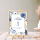Mit dieser eleganten Hochzeitskarte aus der Tischnummer der Modernen Blauen und Goldfloralen Kollektion können Sie Ihre Gäste stilvoll führen. Diese Karte wurde mit sanften Aquarellfloralen in staubigen Blau- und Goldene Farbtönen, einer raffinierten Goldgrenze und klassischer Serifentypografie gestaltet und verleiht Ihren Empfängen zeitlose Schönheit. Personalisieren Sie mit Ihren Namen und Hochzeitsdatum für ein koordiniertes und berufliches Ende. Ein wunderschönes Detail, das Ihre Sitzanordnung verbessert und gleichzeitig Ihr gesamtes Hochzeitsdekor ergänzt.