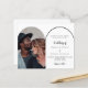 Eine Foto Bogen Hochzeit Einladung vorne: Fügen Sie Ihre eigene vertikale Größe Foto. Ein schick weißer Hintergrund, schwarzer Text. Personalisieren Sie Ihre Namen und Details und fügen Sie diese hinzu. Zurück: Sie können mehr Text hinzufügen, wenn Sie gewollt haben. Gehen Sie in das Design-Tool und fügen Sie auf die hintere Ebene. 1 Blatt = 1 Einladung mit Druckkante bis Kante.