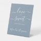 Liebe ist süß! Dieses schlichte und dennoch elegante Kalligraphie-Zeichen zeichnet sich durch elegante Kalligraphie aus. Passen Sie dieses elegante Hochzeitszeichen mit Ihren Namen an! COPYRIGHT © 2020 Judy Burrows, Black Dog Art - Alle Rechte vorbehalten. Moderne Hochzeitsszene Liebe Süß Personalisiertes blaues Himmelszeichen