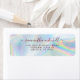 "Niedliche und funkelnd Imitate holografische Hintergrund Rücksendeadresse Etikett für kleine Unternehmen und große Unternehmen. Das Design verfügt über ein modernes Skript, Typografie, trendige Schriftart und einen einfachen, aber dennoch wirkungsvollen Hintergrund. Ideal für Kosmetiker oder Schönheitssalonbesitzer, Makeup-Künstler, Kostümmacher, Friseur oder Kosmetologe." Fügen Sie einfach Ihr Logo, Ihren Namen und Ihre Geschäftsdaten zu dieser hellen und modernen Karte hinzu, indem Sie oben auf den Button "Personalisieren" klicken. HINWEIS: Die holografischen Details werden im Kunstwerk simuliert. Beim Drucken wird es keine wirklichen holografischen Glanzeffekte geben.