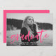 Laden Sie sich mit unseren modernen, gelben Graduiereinladungen in Brushed Script in Ihre Abschlussfeier ein. Die einzigartige Graduierungsparty lädt mit einem hochrosa, modernen, handgeschriebenen Script-Schriftart-Overlay auf der Vorderseite zum "Graduieren" ein. Fügen Sie Ihren Lieblings-Foto und den Namen, die Schule und das geschlossen Jahr des Absolventen hinzu. Fügen Sie die Details Ihrer Graduierungspartei auf die Rückseite.