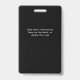 Dieses moderne, auffällige Unternehmen ID Abzeichen für Ihre Mitarbeiter ist viel mehr auf Trend und stilvoller als jedes alte ID-Abzeichen! Das schwarze Design verfügt über eine große, fett-weiße Typografie, mit einer minimalistischen Linienführung und einem Raum für das Foto Ihrer Mitarbeiter, sowie einen Spot für Ihr Unternehmen oder Event Logo. Auf der Rückseite des Abzeichen können Sie bei Bedarf zusätzliche Informationen erhalten. Dieses Abzeichen ist beruflich genug für Ihre geschäftliche oder berufliche Konferenz- oder Standardisierungsabteilung, aber immer auf dem neuesten Stand genug für Ihre Unterhaltungs- oder Musikveranstaltungen oder Konzertmitarbeiter und Sicherheitskräfte, oder sogar Ihre Mitarbeiter im Einzelhandel oder in der Boutique!