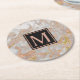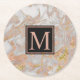 Moderne Imitate Rose Gold Marmor Swirl Monogramm Runder Pappuntersetzer