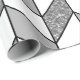 Dieses Verpackungspapier zeichnet sich durch ein elegantes Zickzack Design mit einem geometrischen Herringbone-Muster in weiß und Imitat silber Glitzer mit schwarzen Linien aus.
