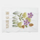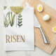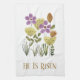 Er ist verschwiegen. Auferstehung Sonntag Ostern Küchentücher mit einem schönen modernen Blumendesign mit lila und gelben Osterfarben. Sie können Text/Schriftart Stile/Farben ändern.