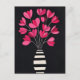 Die magentafarbenen Blüten blühen aus einer klassischen, schwarz gestreiften Vase auf einem leichten Minzhintergrund und sorgen für ein Vintages cooles Leben.