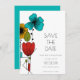 Diese personalisierbare Hochzeit speichern Sie die Dattelkarte hat ein sauberes und modernes Aussehen. Es zeigt eine Blumenbilderfassung, die vom Jugendstil-Design in schwarz, leuchtend türkisblau, rot, hellgrün und goldgelb inspiriert wurde. Der benutzerdefinierte Text befindet sich in einem sauberen serifenlosen Schriftart.