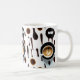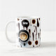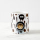 Diese Tasse besticht durch ein modernes und kühnes Design, das sich perfekt für Kaffeeliebhaber eignet. Das Hauptdesign zeigt Kaffeeflecken und -tropfen, die ein dynamisches, abstraktes Muster in kräftigen Brauntönen auf einem knusprigen, weißen Hintergrund erzeugen. Eine Tasse Kaffee mit Latte Art bietet eine stilvolle Touch und betont das Kaffeethema. Die Tasse umfasst individuell anpassbare Bereiche für Initialen, die an drei Orten innerhalb der Kaffeefleckmotive sichtbar angezeigt werden und dem Design eine persönliche Touch verleihen. Diese Kombination aus funktionalen und künstlerischen Elementen macht es zu einem idealen Geschenk oder Accessoire für Kaffeeliebhaber.
