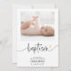 Moderne Kalligraphie Foto Taufe Einladung Moderne minimalistische Taufe mit einem Foto, moderne Kalligraphie Titel und Imitate Goldkreuz. Die Taufe und die Details zum Mittagessen erscheinen auf der Rückseite der Einladung. Diese moderne Taufe aus Foto kann für beide Geschlechter genutzt werden und ist ideal für jemanden, der eine einfache minimalistische Taufveranstaltung sucht.