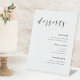 Die Speisekarte für Hochzeitsdesserts ist nach Maß mit modernem Schwarz-Weiß-Design gestaltet. Dieses Design ist auch als Plakatformat und digitaler Download erhältlich.