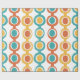 Dieses Verpackungspapier hat ein modernes Design von Kreisen aus der Mitte des Jahrhunderts, die miteinander verbunden sind und eine Kette mit weißen und farbigen Kreisen im Inneren bilden. Woll verschiedene Farben? Nachricht.