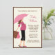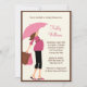 Diese pinkfarbene und braune Baby-Dusche-Einladung beinhaltet eine niedliche Silhouette einer schwangeren Frau mit einem Regenschirm und ist einfach gewartet, um mit Ihren Details. Diese moderne und elegante Babydusche ist perfekt für jede Mutter. © BabyStar Design